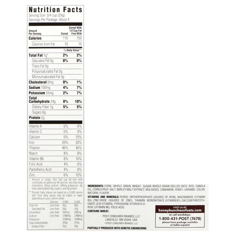 Start your day off right with Post® Honey Bunches of Oats® Crunchy Honey Roasted Cereal! With no saturated fat, only 100 grams of sodium, and only 6 grams of sugar per serving, this naturally-flavored cereal will help boost your energy without the guilt of unnecessary fats, sugars, and sodium. Perfect for your pantry at home, stocking rental properties, churches or shelters, keeping in the office break room, and more.