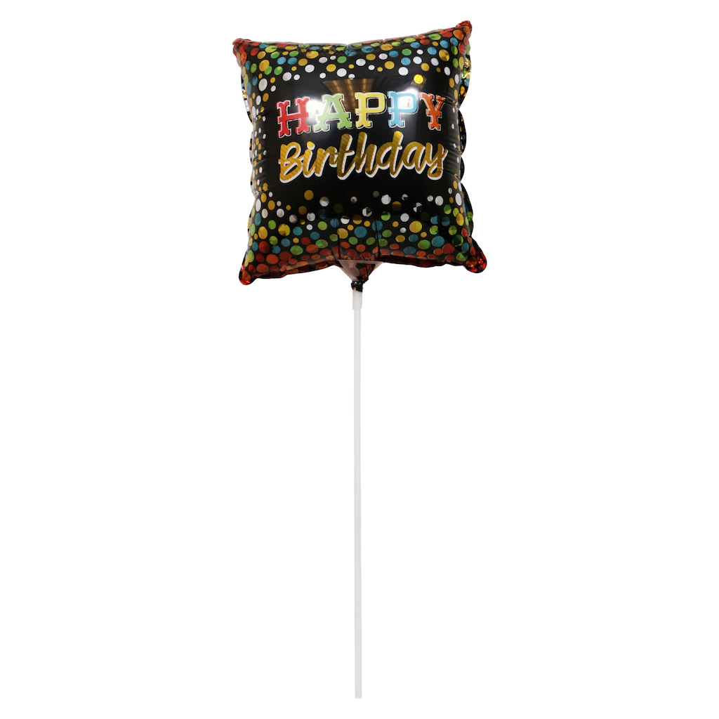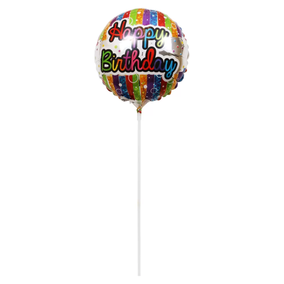 Colorful foil balloons are accented with whimsical stars, stripes, and other attractive and fun designs while touting a festive “Happy Birthday” greeting! These are wonderful added to flower arrangements, baskets, and other gifts. Ideal for florists for adding a celebratory item to bouquets.