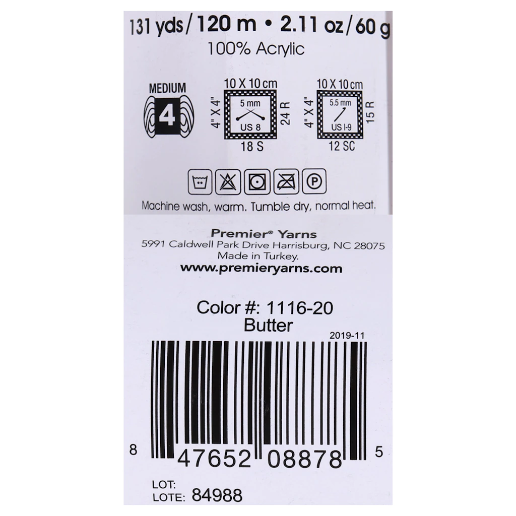 Assortment Details: 131-yd. Premier Just™ Butter Acrylic Yarn