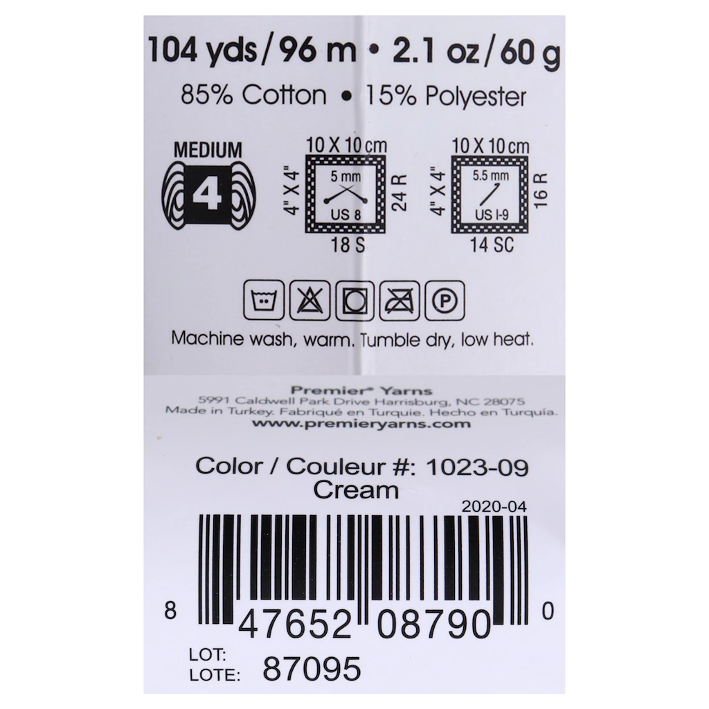 Assortment Details: 104-yd. Premier Just™ Cream Cotton Yarn