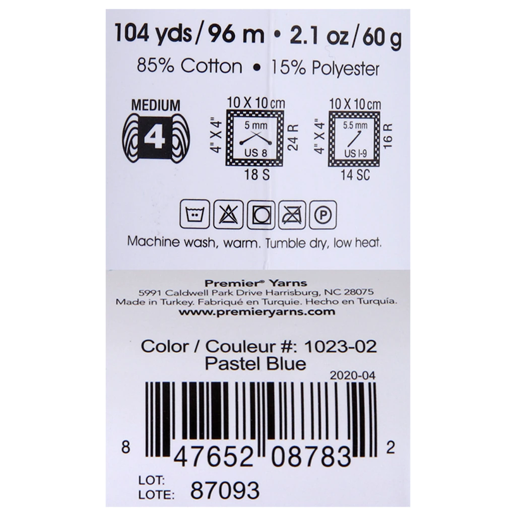Assortment Details: 104-yd. Premier Just Pastel Blue Cotton Yarn