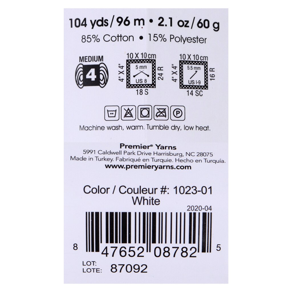 Assortment Details: 104-yd. Premier Just™ White Cotton Yarn
