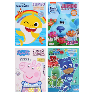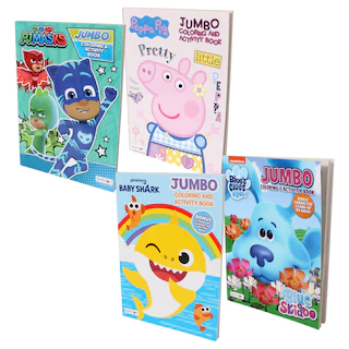 Assortment Details: 10.75×7.75-in. Preschool Jumbo Assorted Licensed Coloring Books assorted among Nickelodeon™ Baby Shark, Nickelodeon™ Blue’s Clues, Peppa Pig™, PJ Masks