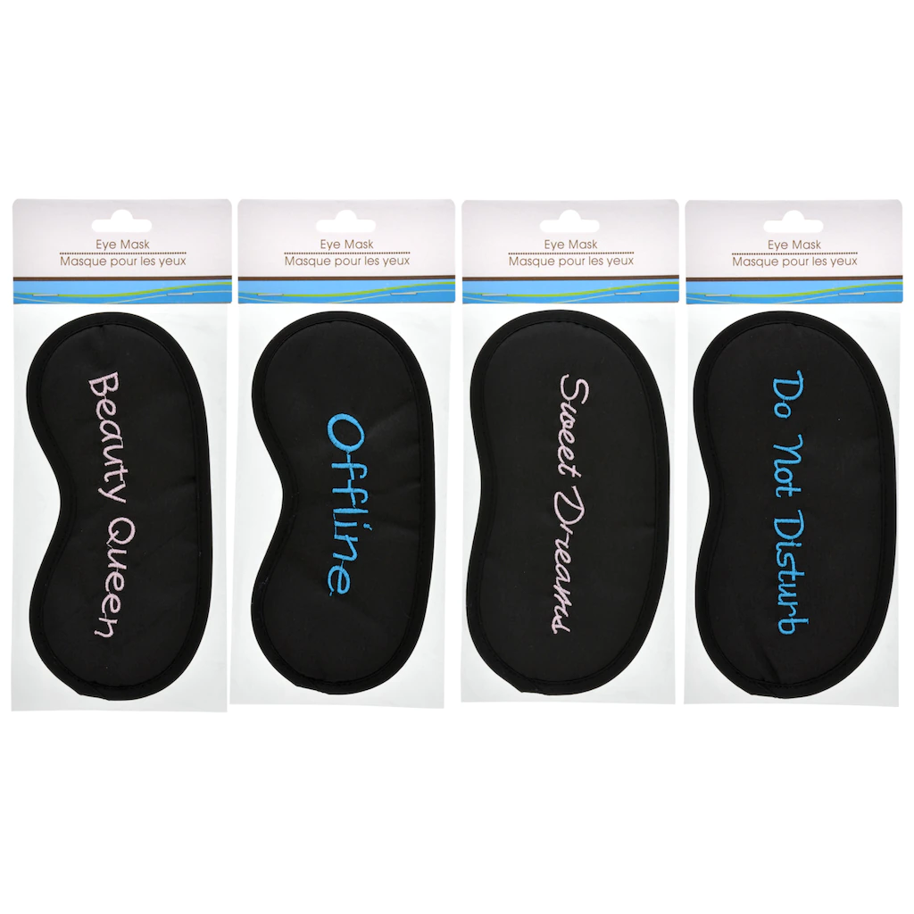 Assortment Details: Printed Polyester Sleep Masks assorted among Do Not Disturb, Beauty Queen, Offline, Sweet Dreams.