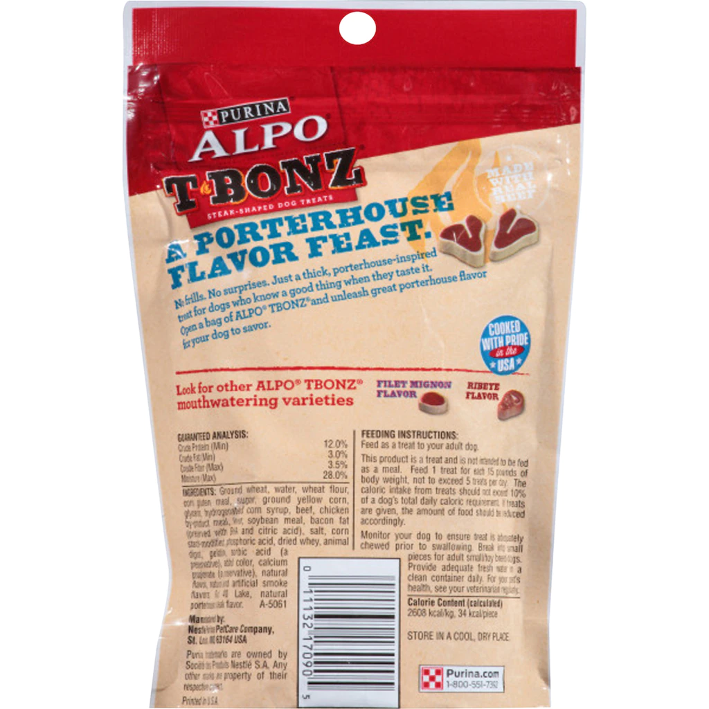 Assortment Details: 4.5-oz. Packs Purina® Alpo® T-Bonz® Porterhouse-Flavored Dog Treats