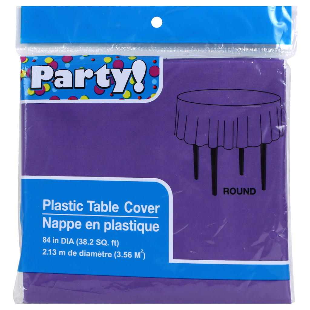 Enjoy your event without stressing about cleanup! Each pack includes one 84-in. diameter round plastic table cover. These Purple Round Plastic Table Covers are disposable for convenient and easy cleanup after any party, cookout, or banquet!