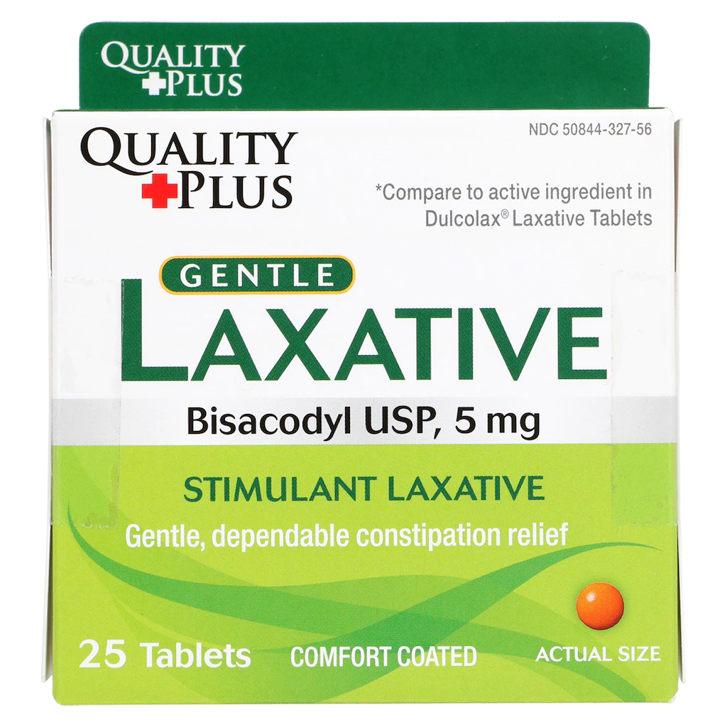 Quality Plus Gentle Laxative Tablets are formulated to help relieve occasional constipation and irregularity. Each box of these stimulant laxatives includes 25 comfort-coated 5-mg. tablets. A must-have for your medicine cabinet!