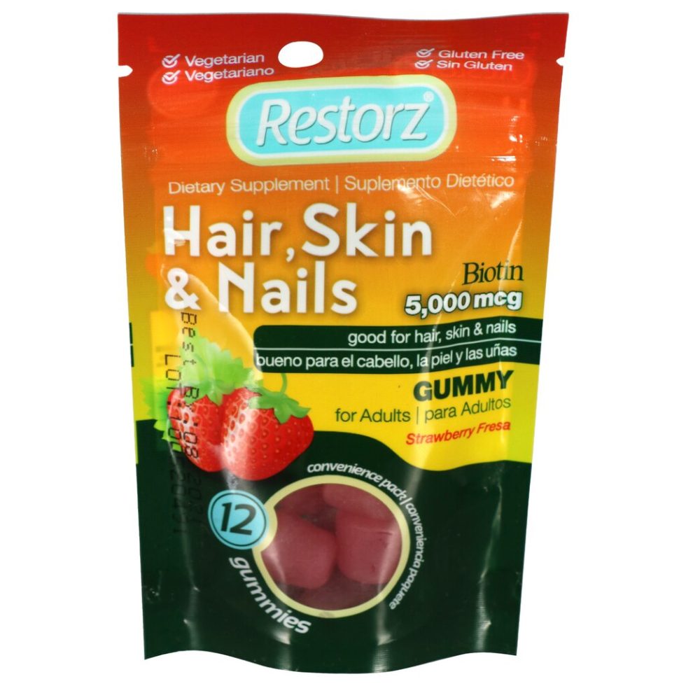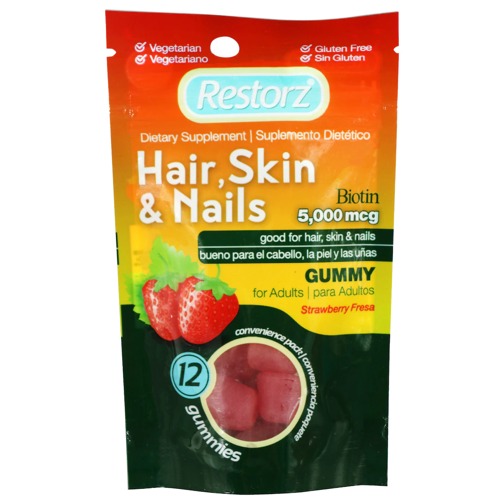 Assortment Details: 12-ct. Packs of Restorz® Strawberry-Flavored Gummy Biotin Supplements