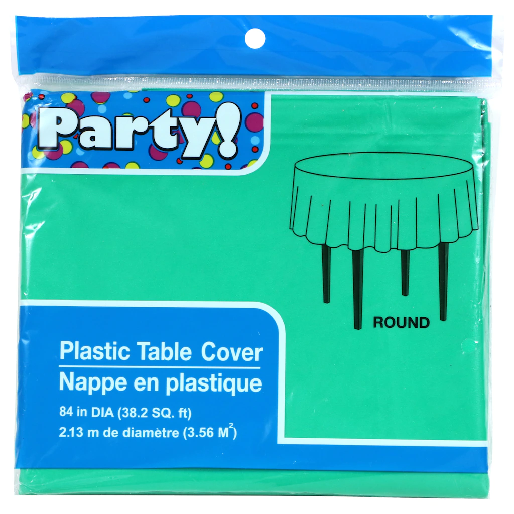 Assortment Details: 84-in. Round Green Plastic Table Covers.