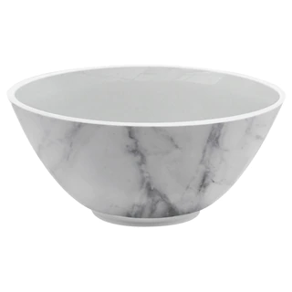 Durable, sturdy melamine bowls are perfect for holding side dishes, chips, and salads at your next potluck, picnic, or party! Each bowl has a marbled print exterior and a clean white interior. Great for parties, restaurants, and everyday use at home.
