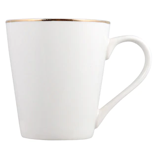 White stoneware mugs add a contemporary style and dramatic flair to your dining table! Mugs have classically elegant gold rims and are the perfect accent for dinner parties, receptions, and special events. Their sturdy design will also stand up to use in busy restaurants, bars, and banquet facilities.