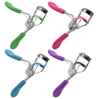 Give your lashes a lift! This eyelash curler has a colorful comfort grip, a replacement sponge, and is designed to give your lashes more curl and give them the appearance of being longer. Keep one in your medicine cabinet, locker, car, desk, and purse. They come assorted among purple, blue, pink, and green.
