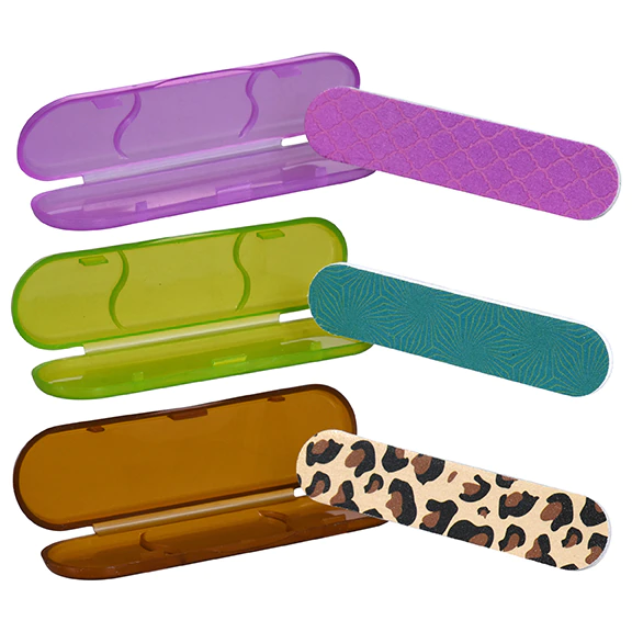 These colorful nail files come with their own plastic case! Assorted among pineapple, avocado, and floral prints, these 3.5×0.75-in. nail files are the perfect size for keeping in purses and backpacks or even in your pocket. Great for manicures and pedicures at home or touchups on the go!