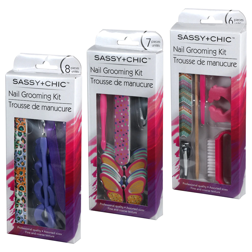 Assortment Details: 8-ct. Packs of Sassy+Chic® Nail Grooming Kits assorted among the 3 packs shown