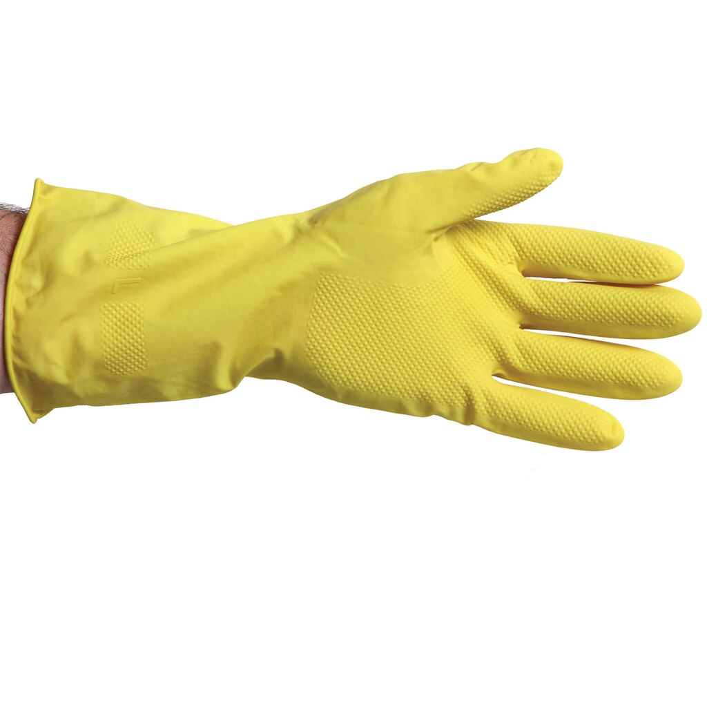 Great for household chores! Thick reusable latex gloves protect hands from detergents, bleaches, and dyes. Great for cleaning companies, salons, and more. Packaging may vary.