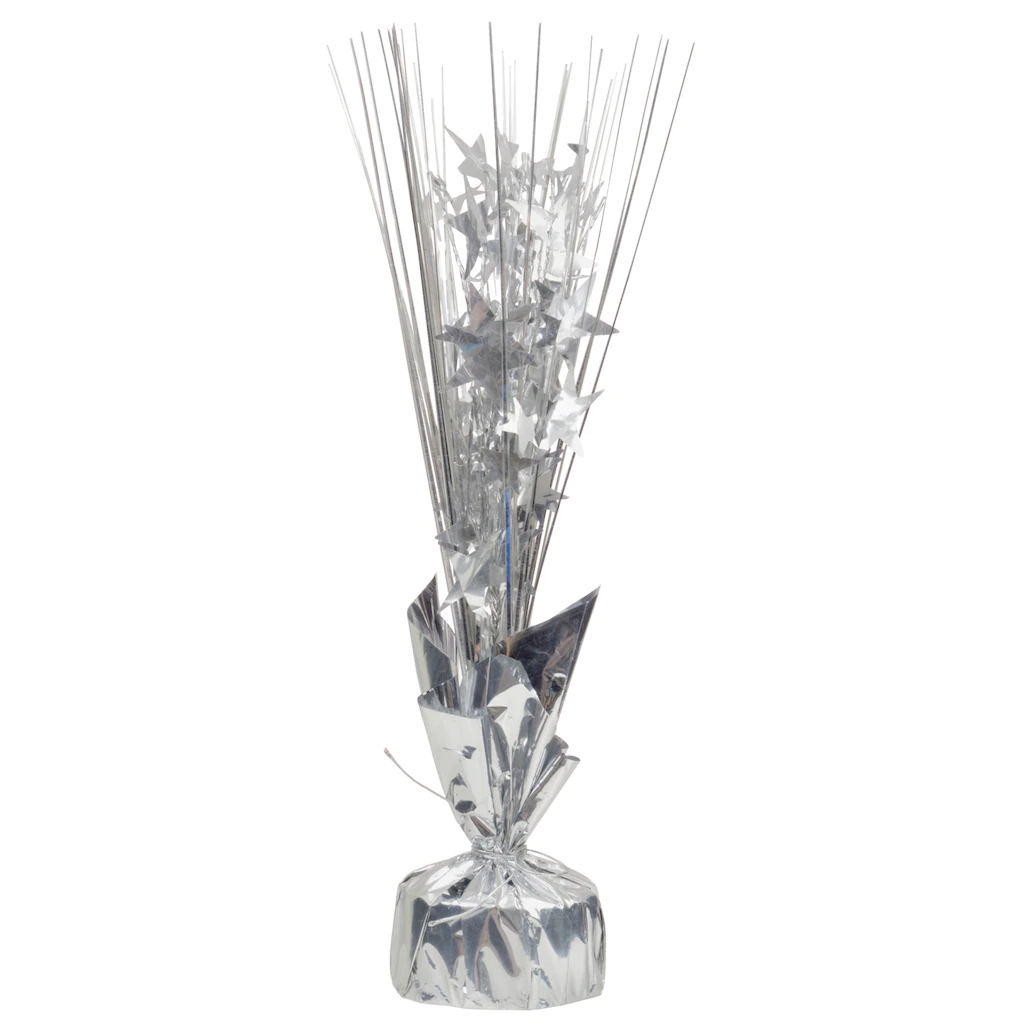 Weigh down balloons and keep them secure with a bang of sparkling silver color and celebration! Festive silver balloon weights have heavy bases covered in metallic foil paper with bursts of foil stars shooting from the middle. Also make great table centerpieces for parties, showers, and banquets!