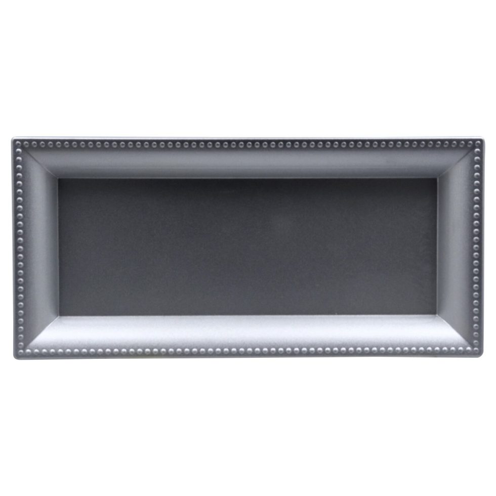 Decorate your home with beaded sophistication. Rectangular silver charger trays with beaded rims make excellent centerpieces on dining or coffee tables, mantle top decor, entryway table decor, and much more. They measure 14.25×6.75×1-in. and are not food safe. Great also for hotel lobbies, office buildings, reception halls, and more.