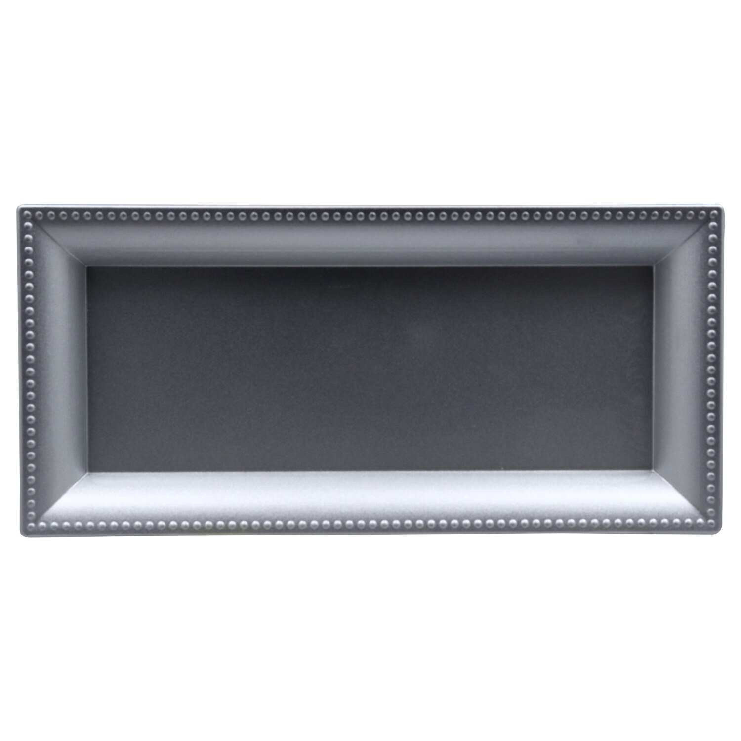 Assortment Details: 14.25×6.75×1-in. Silver Rectangular Plastic Charger Trays