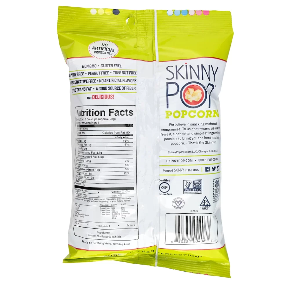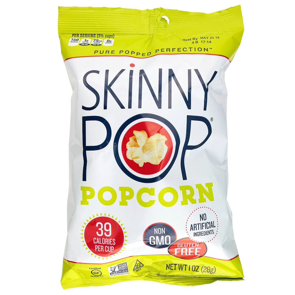 Healthier and delicious! If you still want to enjoy your favorite treats while eating healthier than you must try SkinnyPop®. These 1-oz. bags of popcorn have no artificial ingredients, are gluten and gmo free, and only have 39 calories per cup. Great for snacks during the work day, a yummy treat during school lunches, and a tasty snack at home. Also great for resale in convenience stores, vending machines, and the grocery store.