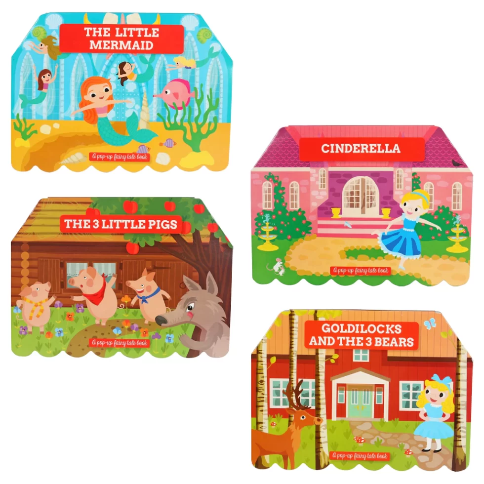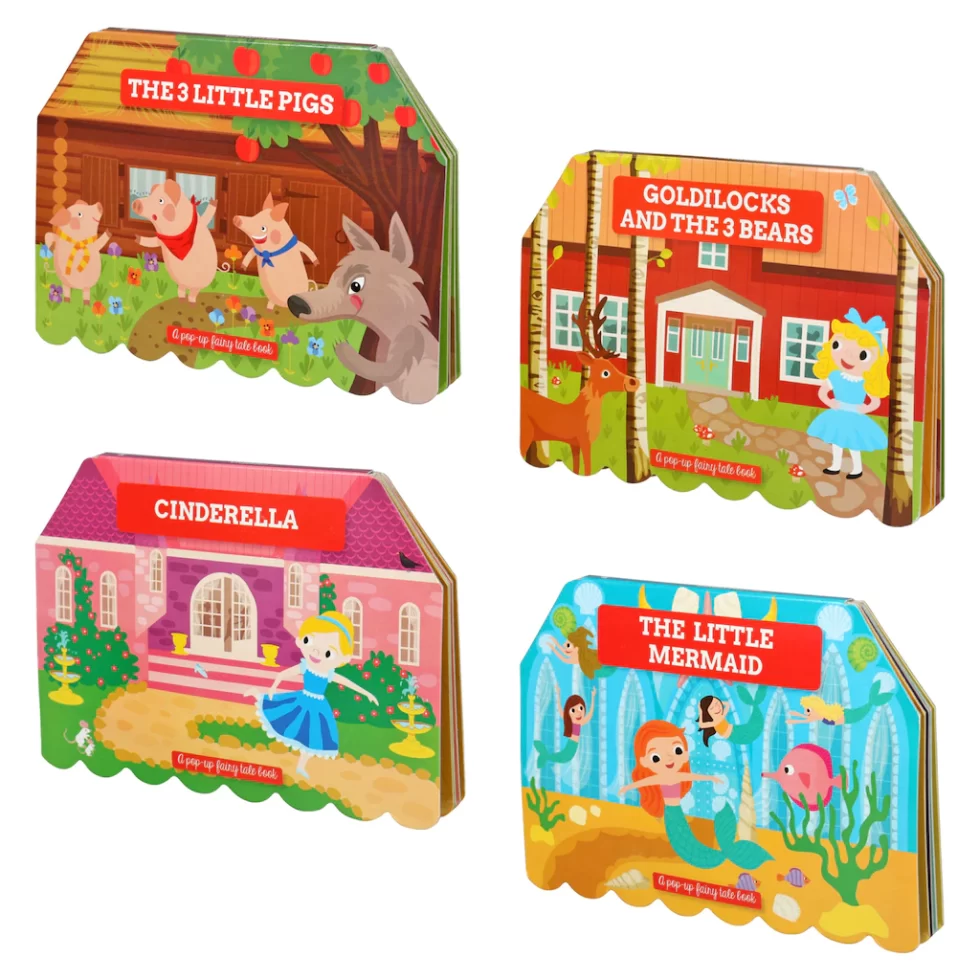 Assortment Details: 5.875×8-in. Small Fairy Tale Pop-Up Books assorted among The Little Mermaid, The 3 Little Pigs, Cinderella, and Goldilocks and the 3 Bears
