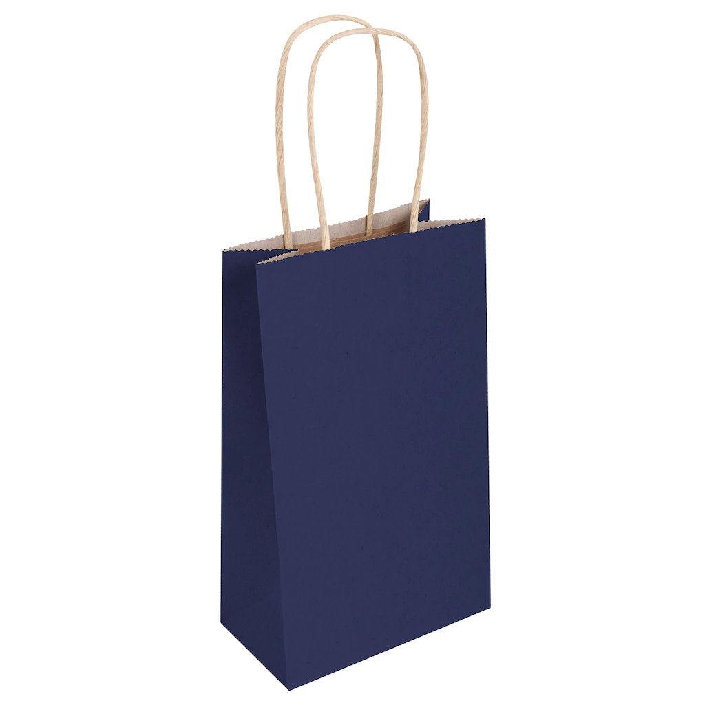 Assortment Details: 3-ct. Packs Small Royal Blue 5.25×2.75×8.5-in. Kraft Paper Gift Bags.