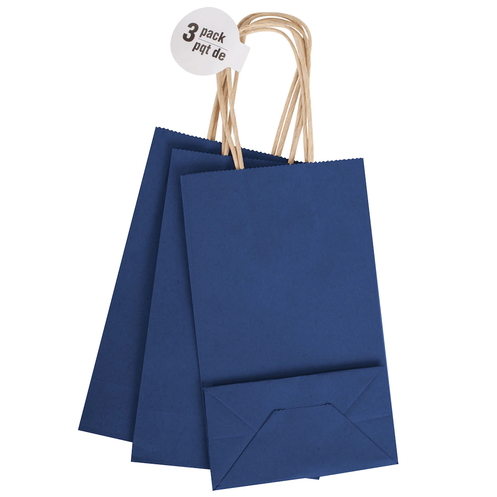 Small Royal Blue Kraft Paper Gift Bags, 3-ct. Packs