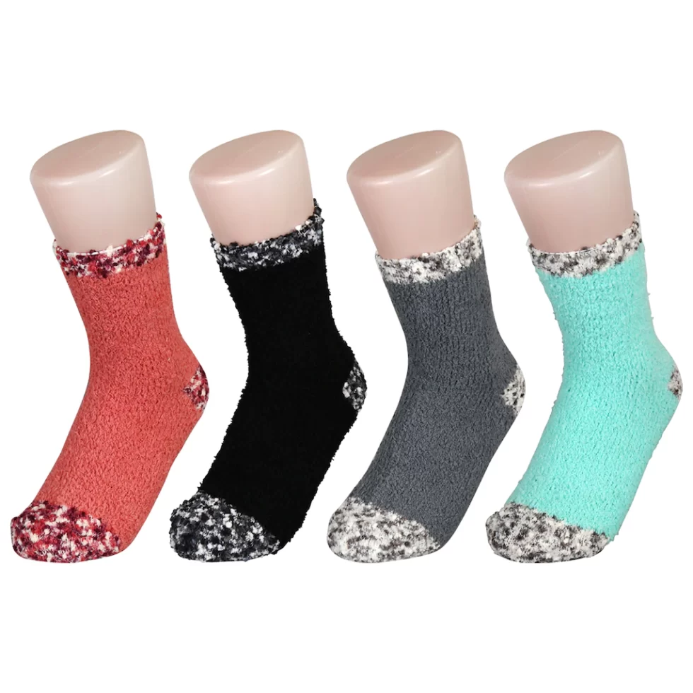 Fun for your feet! These snuggly & stylish two-tone socks in size 5-9 are perfect for keeping your toes toasty during the winter months. Socks come assorted among the 4 styles shown.