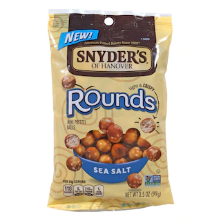Assortment Details: 3.5-oz. bags of Snyder’s® of Hanover Pretzel Rounds with Sea Salt