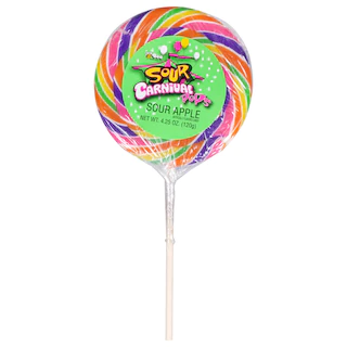Whether you are attending a carnival or not you can enjoy the carnival experience with some of the yummy treats carnivals often offer. 4.25-oz. multicolored lollipops taste deliciously like sour apples. They can be enjoyed during the day or night and you can obtain enough for you and all of your loved ones. Lollipops make great stocking stuffers, Halloween treats, birthday prizes, and classroom treats.