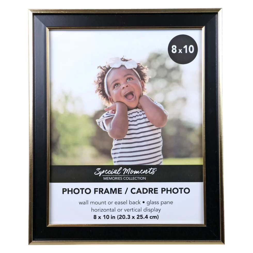 Assortment Details: 8×10-in. Special Moments® Black with Double Gold Trim Picture Frames