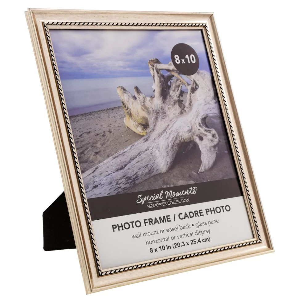 As they say a picture is worth a thousand words, but those words are only completed by the frame the photo is cased in. Frame your favorite moments in classic sophistication! These Special Moments® 8×10-in. easel backed picture frames have a pale champagne appearance that will add a touch of elegance to any room! Plus, the inner edge of the frame has a braided rope texture for an extra special added element. Perfect for resale at gift shops and home decor stores.