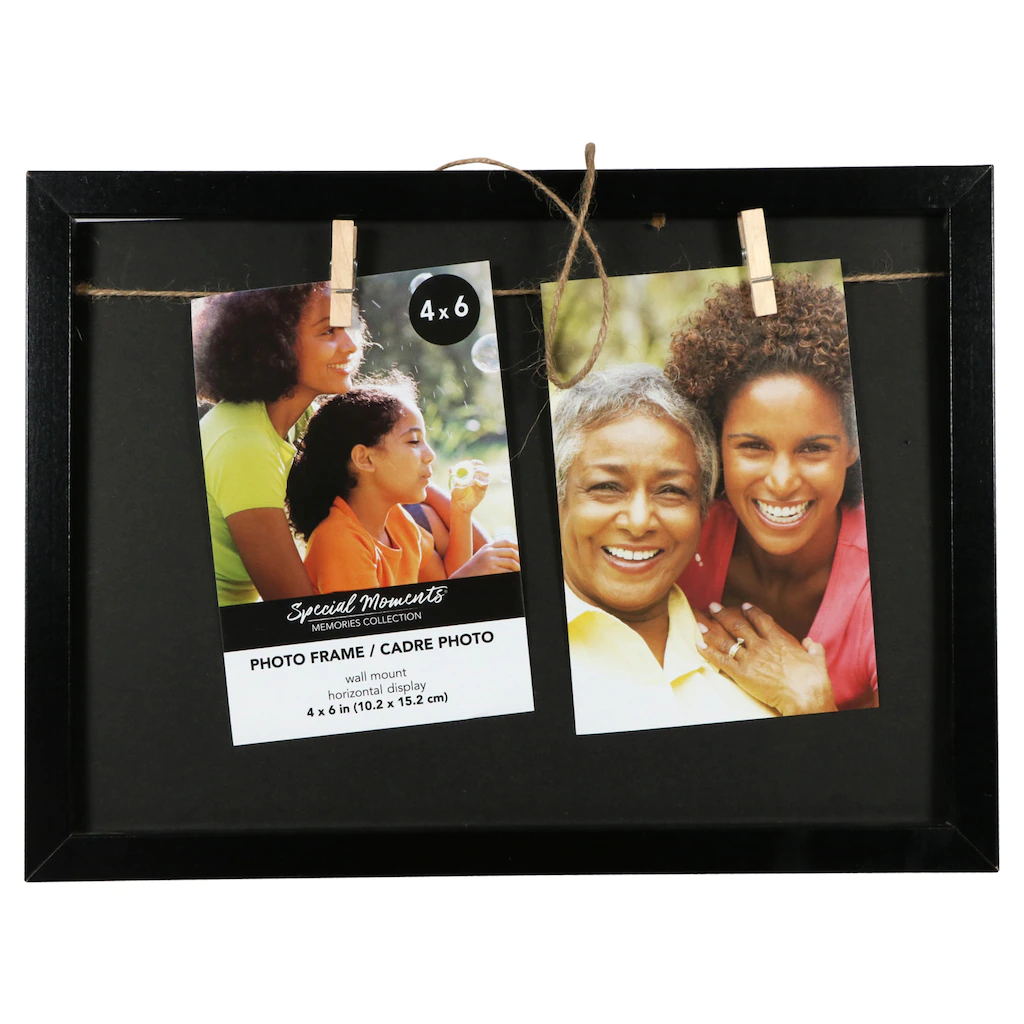 Assortment Details: 4×6-in. Special Moments™ Collage Picture Frames with Clothespin Clips assorted between brown and black frames