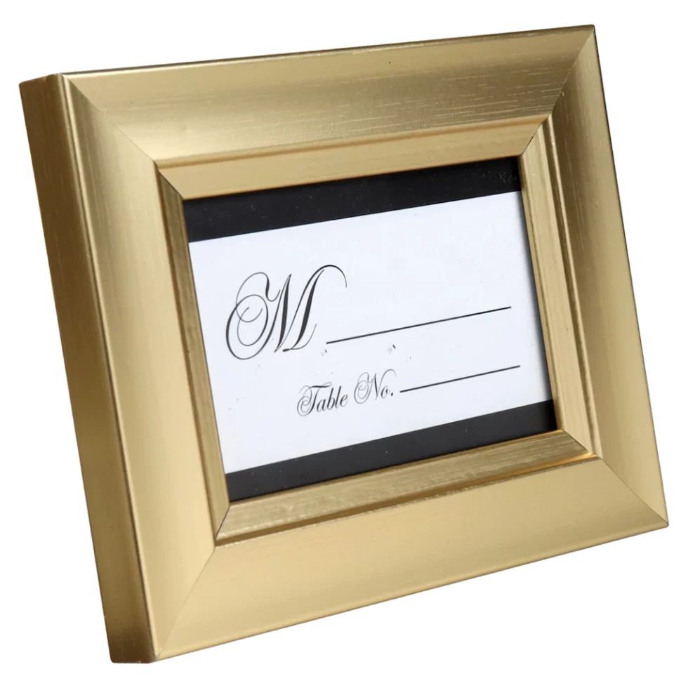 These Special Moments® Memories Collection Mini Gold Photo Frames will complement any occasion — whether you’re marking tables for a wedding or framing your favorite memories! Each frame measures 3.75×4.75-in. but holds a 2.5×3.5-in. photo or decoration. These charming gold frames can be wall-mounted or placed on shelves and tables with the attached easel back stand. Designed for both horizontal and vertical display, these mini frames are perfect for home and office decor or decorating for events and parties!