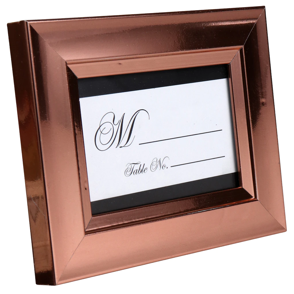 Display some of your captured memories in these rose gold picture frames. 4.75×3.625-in. frames are made to fit a 2×3-in. photograph. You can group them in a small space and make a large impact. These rose gold frames are also ideal for wedding table place cards for guests to take with them. They are beautiful on display on table surfaces, shelves, and mantels. You can also hang them on a wall, which looks stunning when done in a grouping.