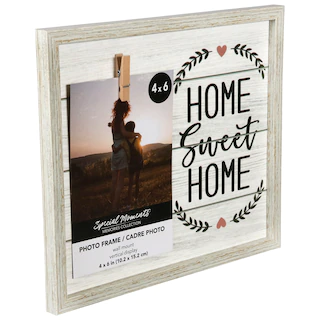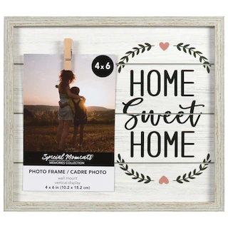 Special Moments White Farmhouse Clips are delightful decor pieces that accommodate 4×6-in photos, notes, artwork, and more. The total size of these pieces is 8×10 in. One side reads “Home Sweet Home.” The other side has a clip waiting to hold your desired display pieces.