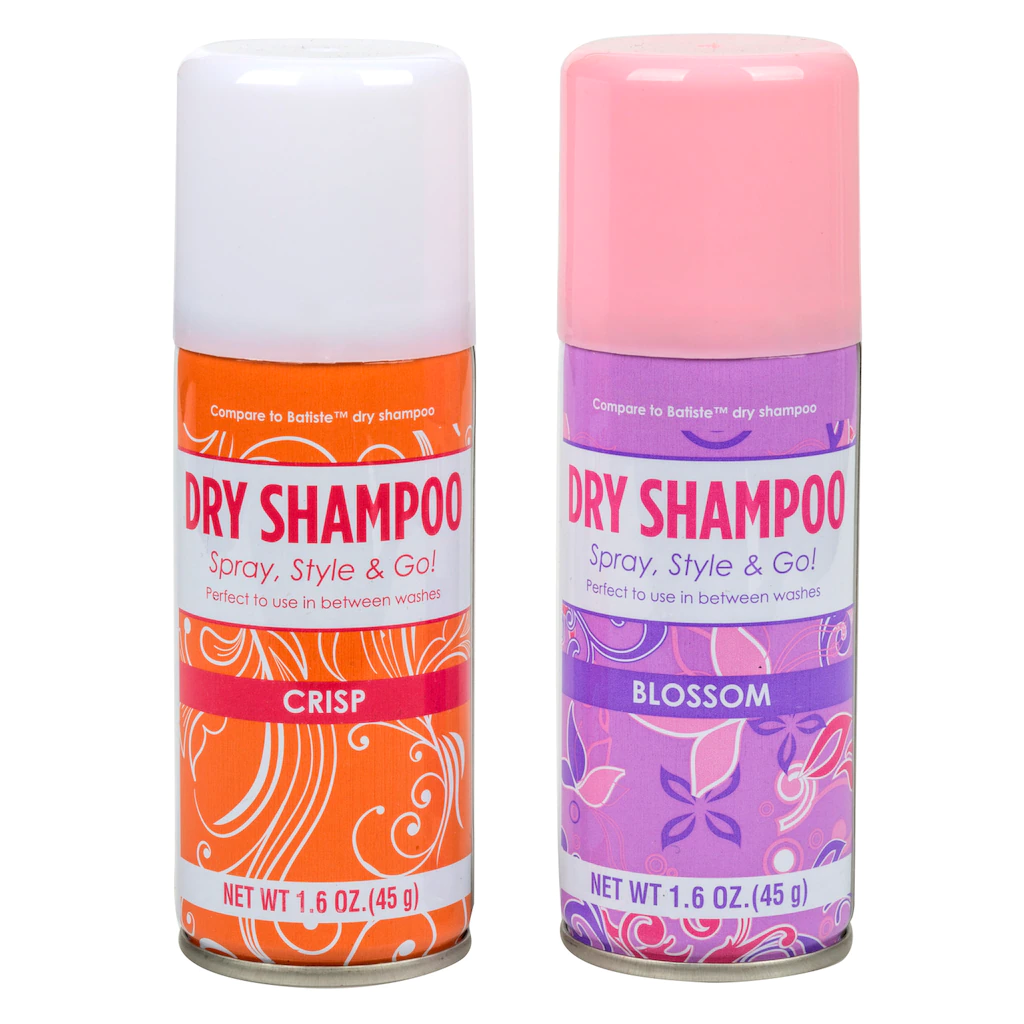 Assortment Details: 1.6-oz. Cans of Spray-in Dry Shampoo assorted between crisp and blossom scents