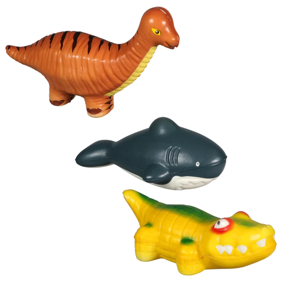 Assortment Details: 3.625×2.25×7.375-in. Squishy Animal Toys for Kids assorted among dinosaurs, whales, and alligators