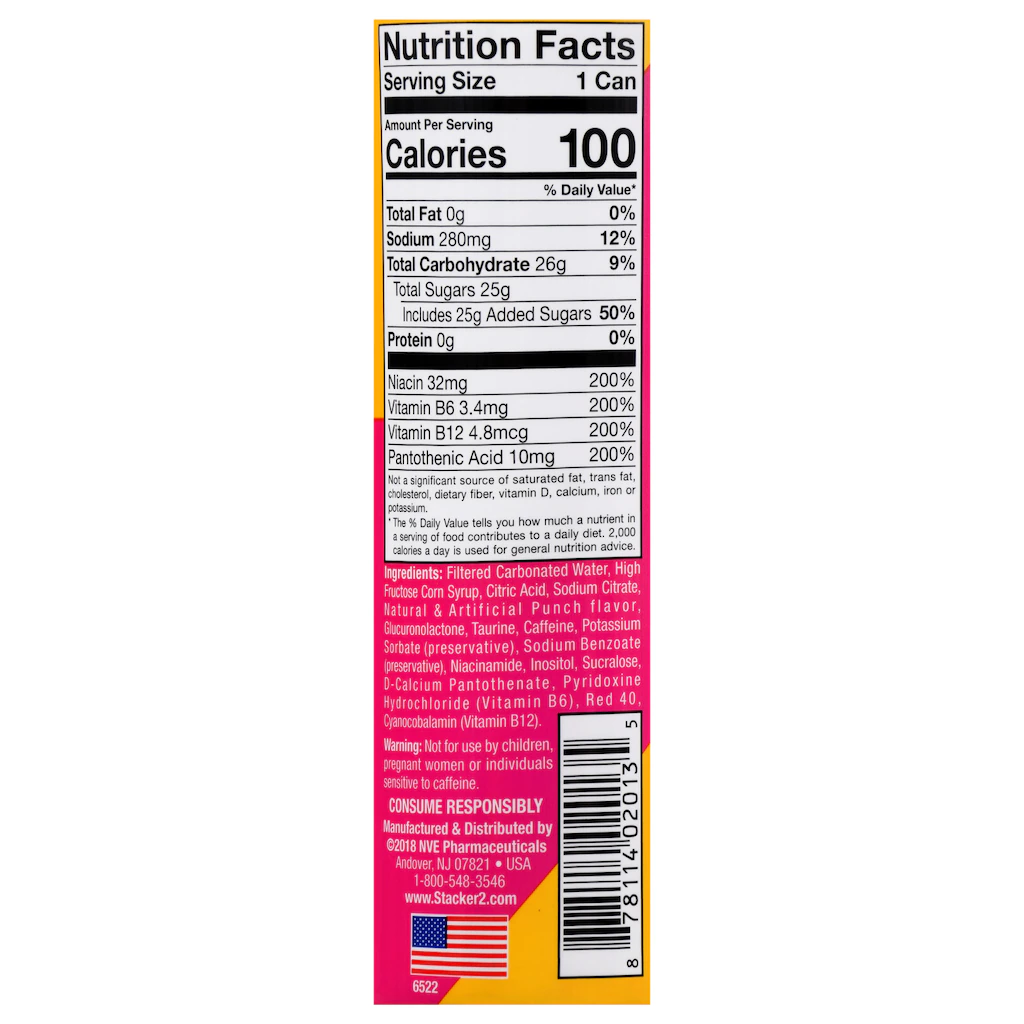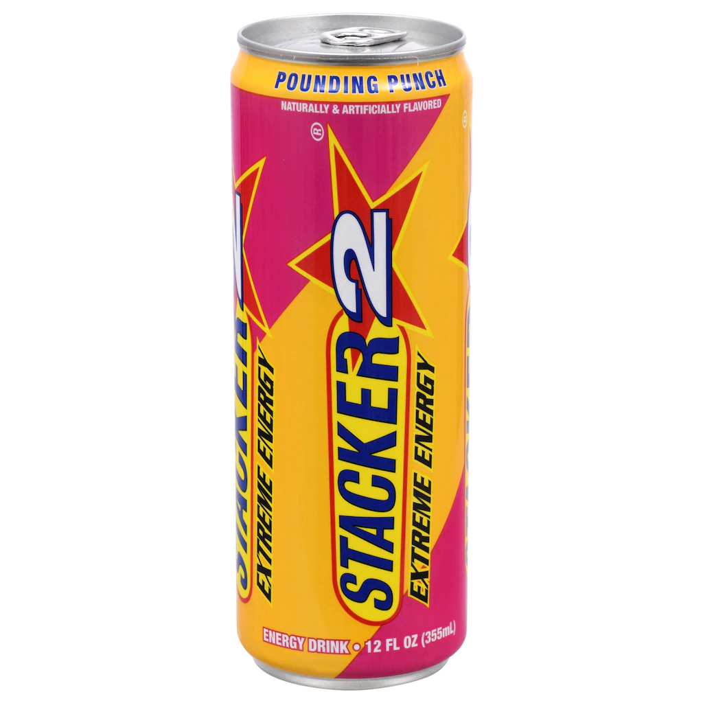 Assortment Details: 12-oz. Cans of Stacker Pounding Punch Extreme Energy Drinks