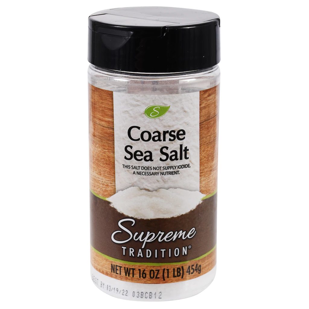 Assortment Details: 16-oz. Bottles of Supreme Tradition® Coarse Sea Salt