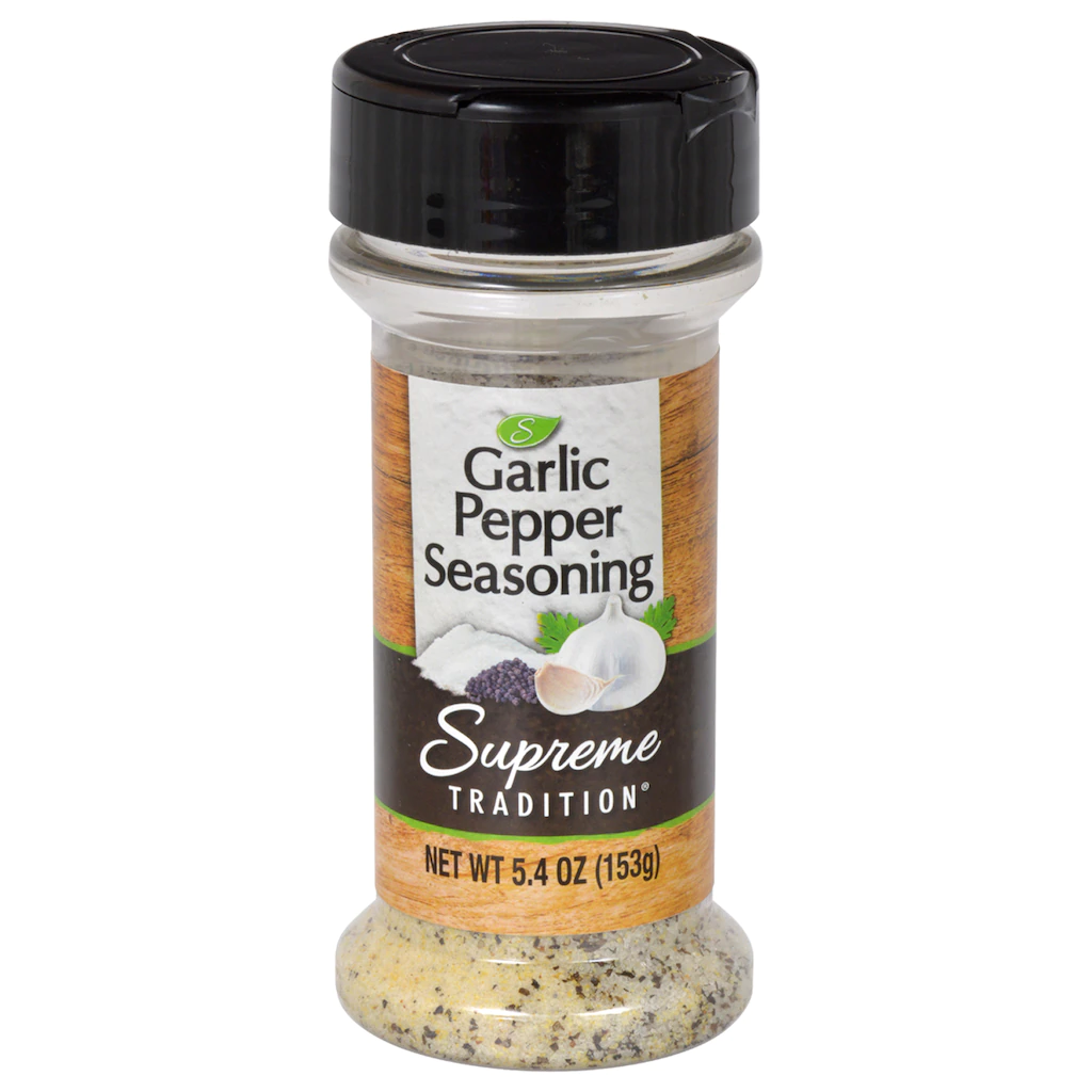 Assortment Details: 5.4-oz Supreme Tradition® Garlic Pepper Seasoning