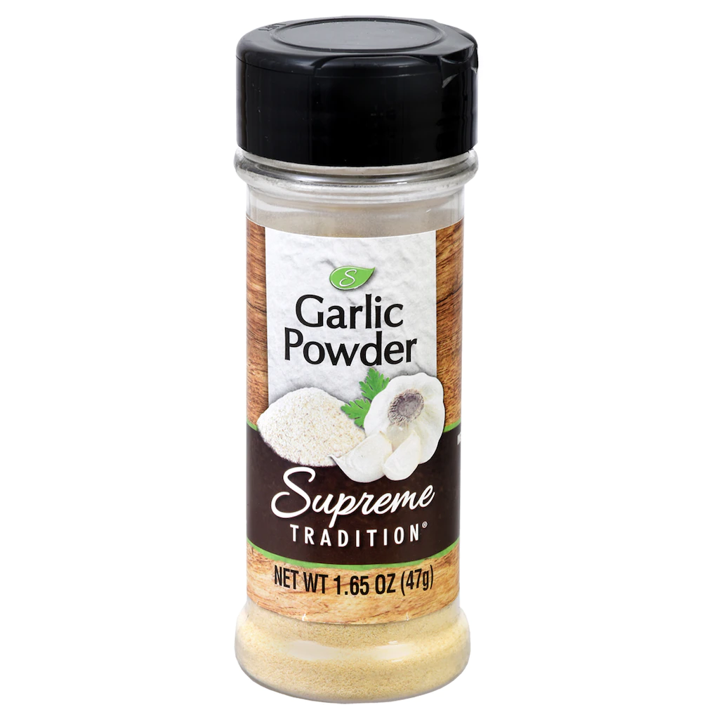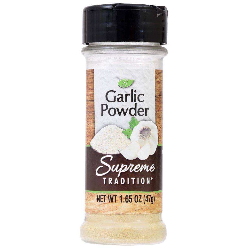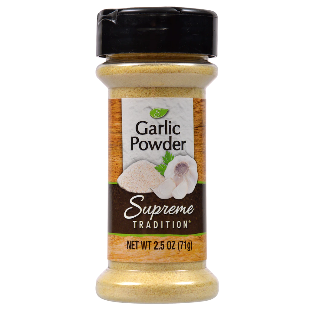 Assortment Details: 2.5-oz. bottle Supreme Tradition® Garlic Powder