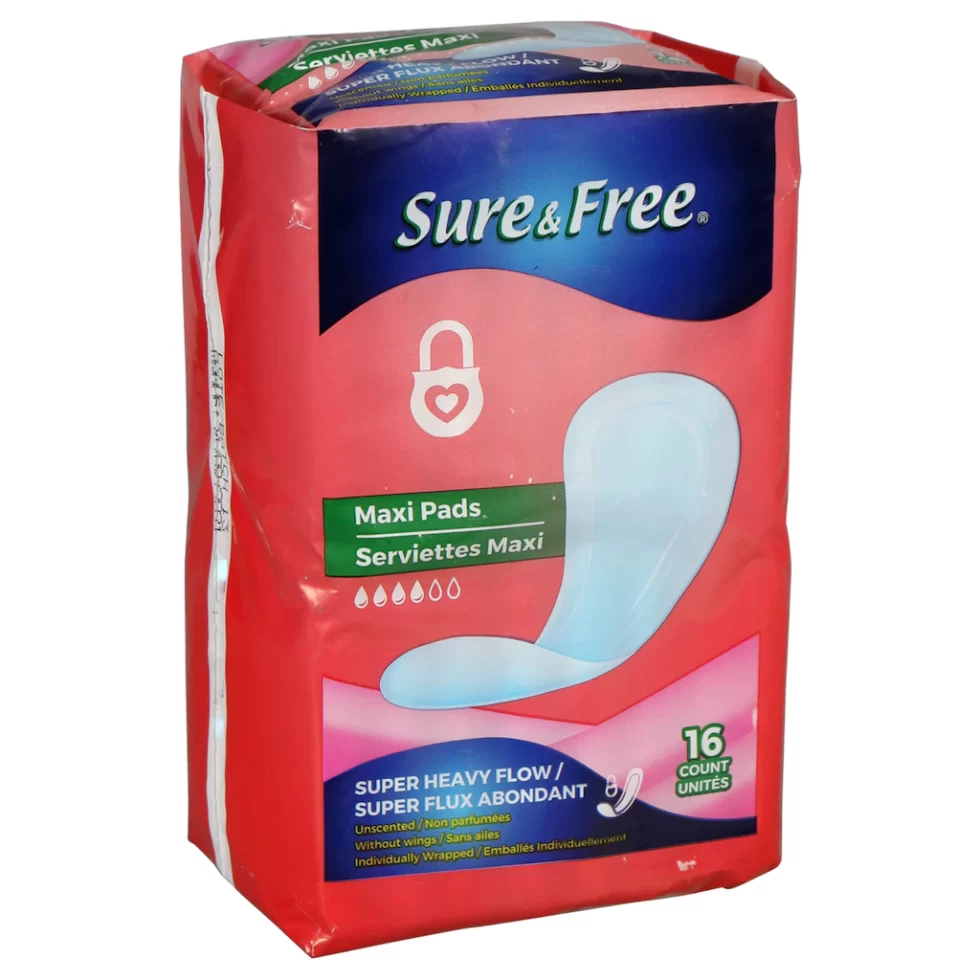 Sure and Free Super Maxi Pads, 16-ct. Packs