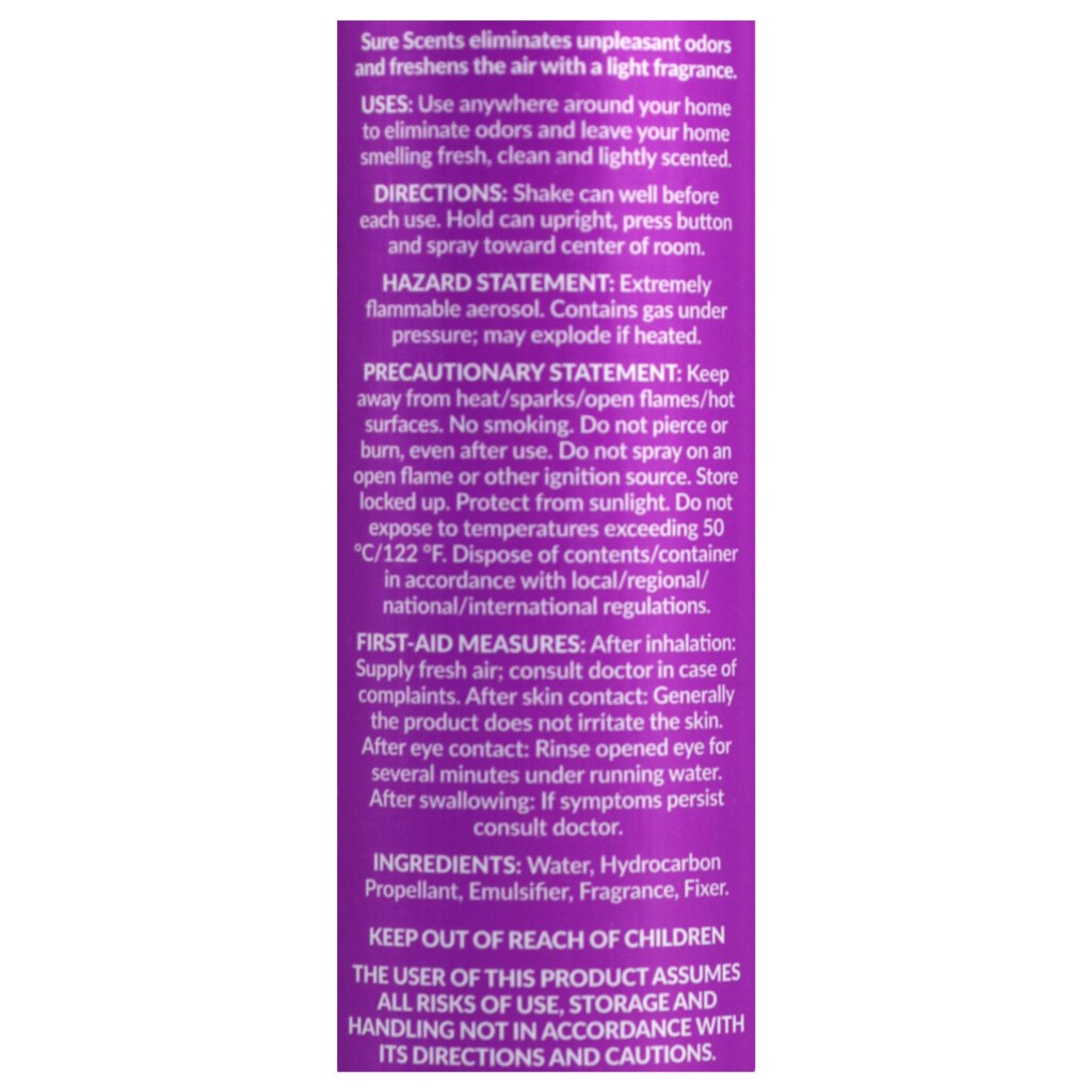 Sure Scents™ lavender air fresheners eliminate odors at the touch of a button. In generous 10-oz. aerosol spray dispensers, the gentle mist fills almost any room with a refreshing scent of lavender that instantly removes any lingering stuffy or unpleasant smell. Ideal around the home, office, or local school, or for keeping in rental properties, cleaning companies, giving in care packages, and more.
