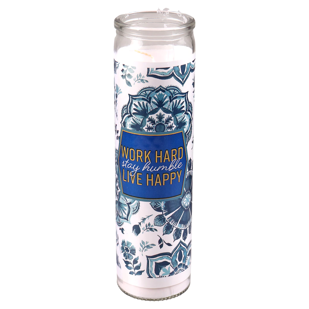 Assortment Details: 8-oz. Tall Inspirational Candles assorted between “Work hard stay humble live happy” and “Success is a series of small things”