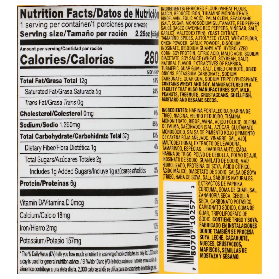 Assortment Details: 2.29-oz. cups of Tapatio® Chicken Flavored Ramen Noodle Soup