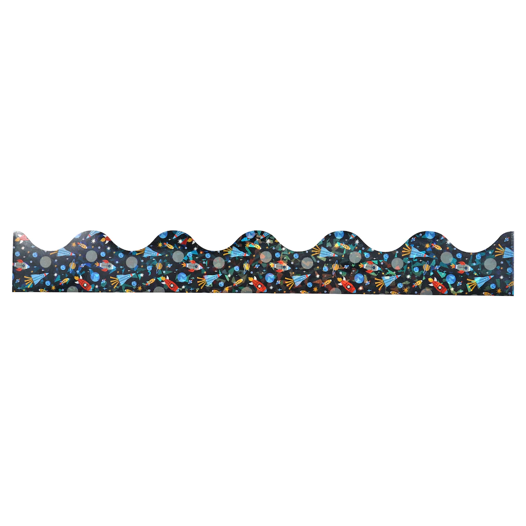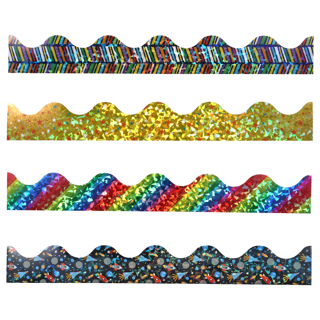 Assortment Details: 12-ct. Packs of Teaching Tree® Metallic Rainbow Wave Borders assorted among the 3 designs shown
