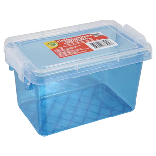 Use these stackable, two-lock containers to organize so many items and keep them in spaces where you can quickly and easily access them. The bases are translucent in pretty colors and the lids are clear, making it easy to see what the container holds. Store art supplies, office supplies, pantry items, and so much more! They are assorted among blue, orange, pink, and light green.