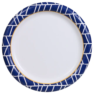 These paper dinner plates are great for serving meals and hors d’oeuvres at your next cookout or pool party! Featuring a fun blue and white geometric design, these dinner plates measure 8.625-in. in diameter and come in packs of fifteen. Pair them with The Home Store™ Large Designer Paper Plates!