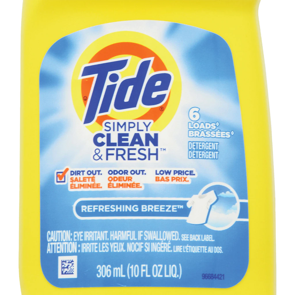 Assortment Details: 10-oz. Bottles Tide® Simply Clean & Fresh Liquid Laundry Detergent with Refreshing Breeze Scent.
