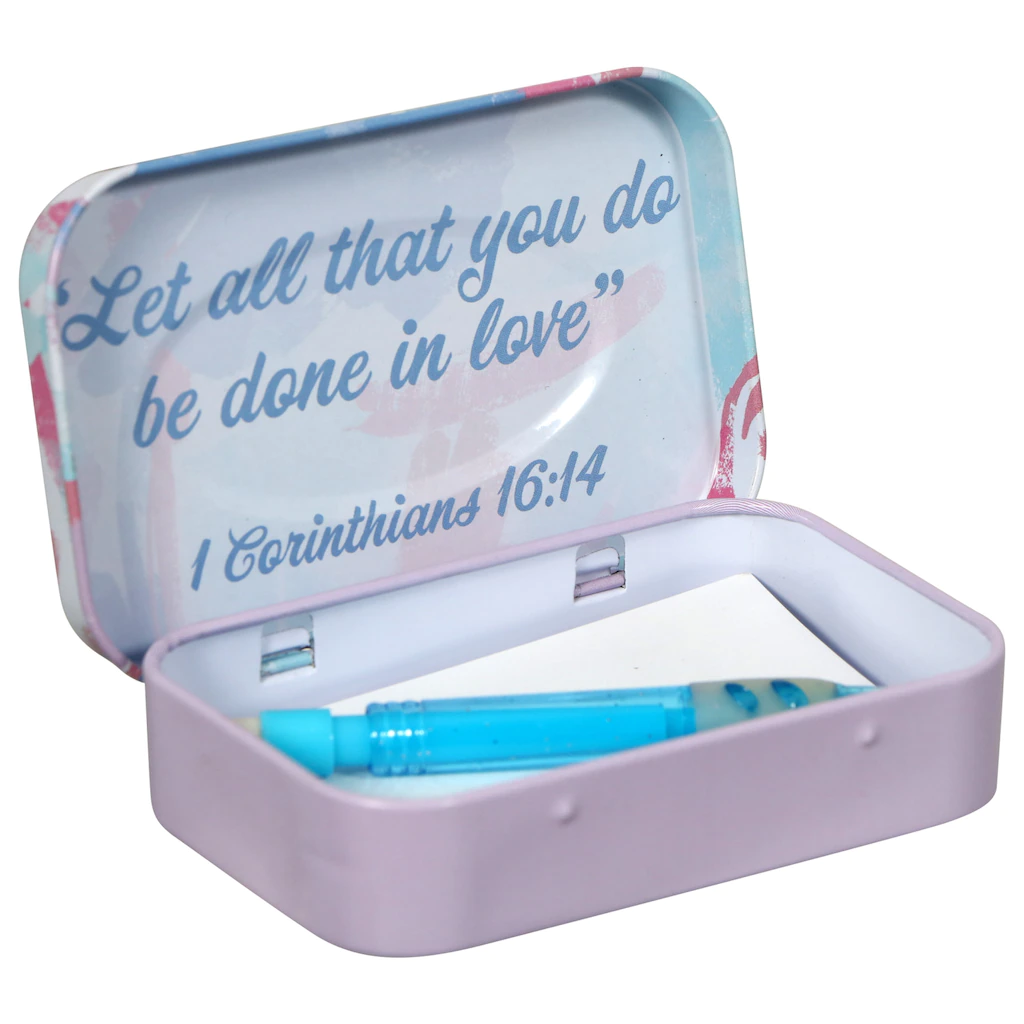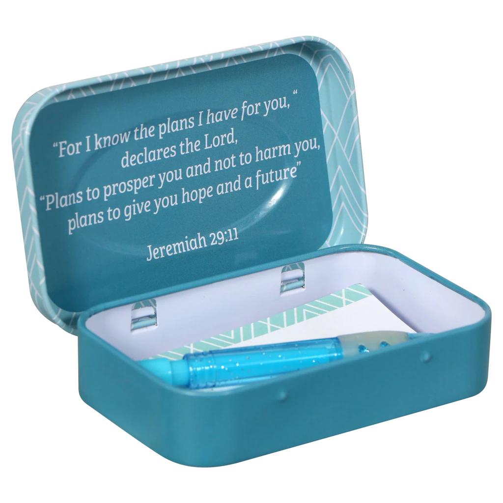 Tin Prayer Boxes with Notepads and Pencils, 4×2.5 in.